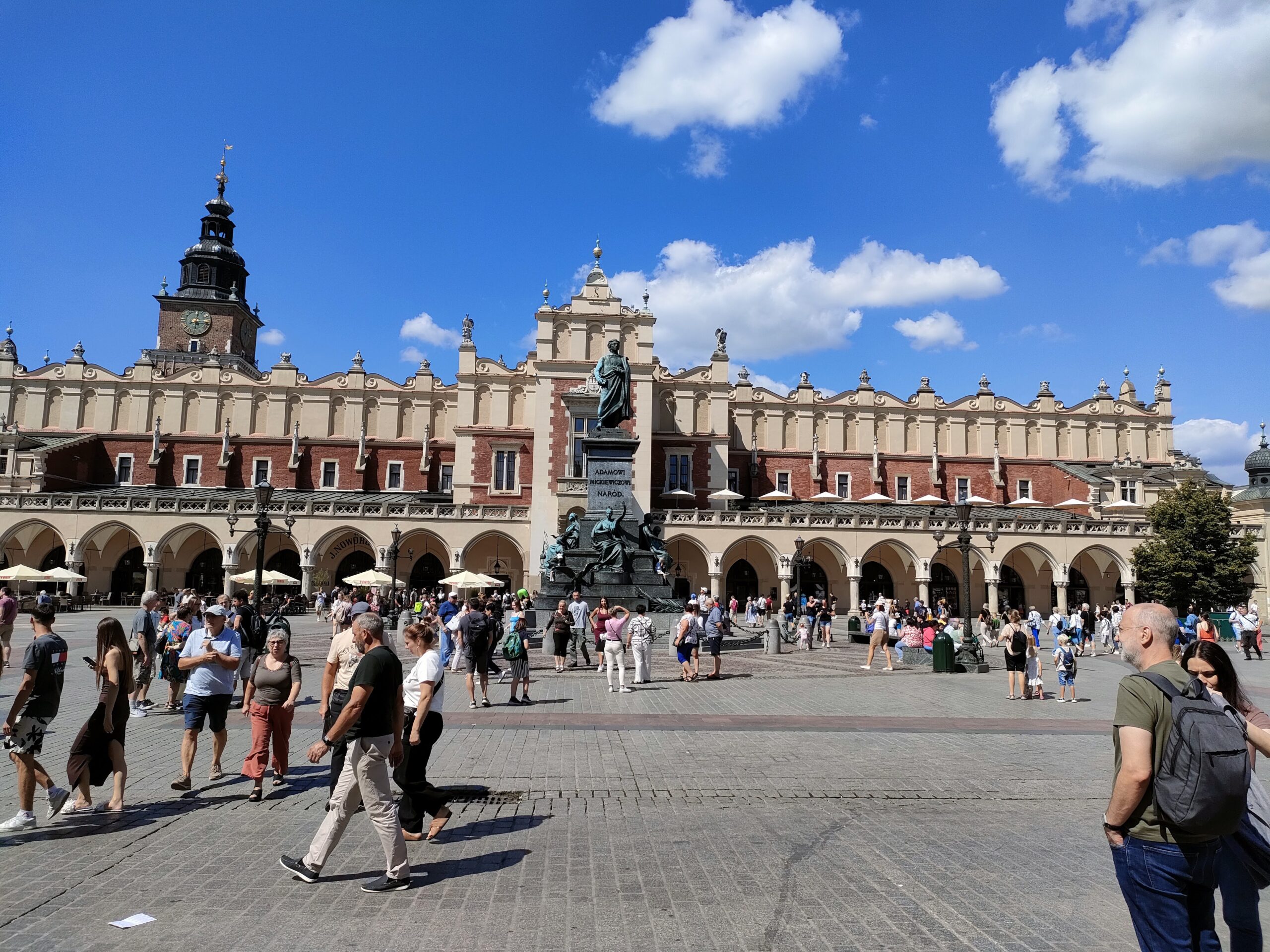 クラクフ1日目、午前中にホテルに荷物を置いた後は、早速クラクフの目玉である中央市場広場に向かいます。